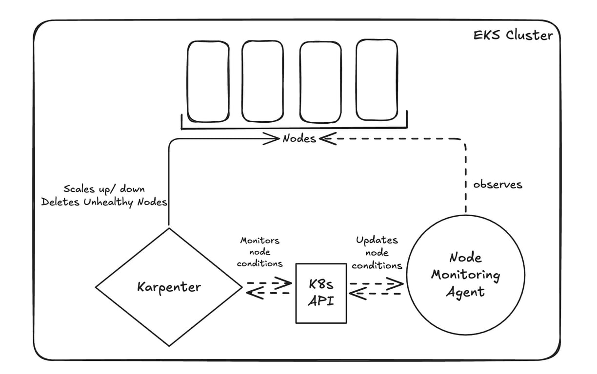 In essence, Karpenter acts as the “self-healing” agent, so you don’t need external Lambdas or custom alarms for node health.