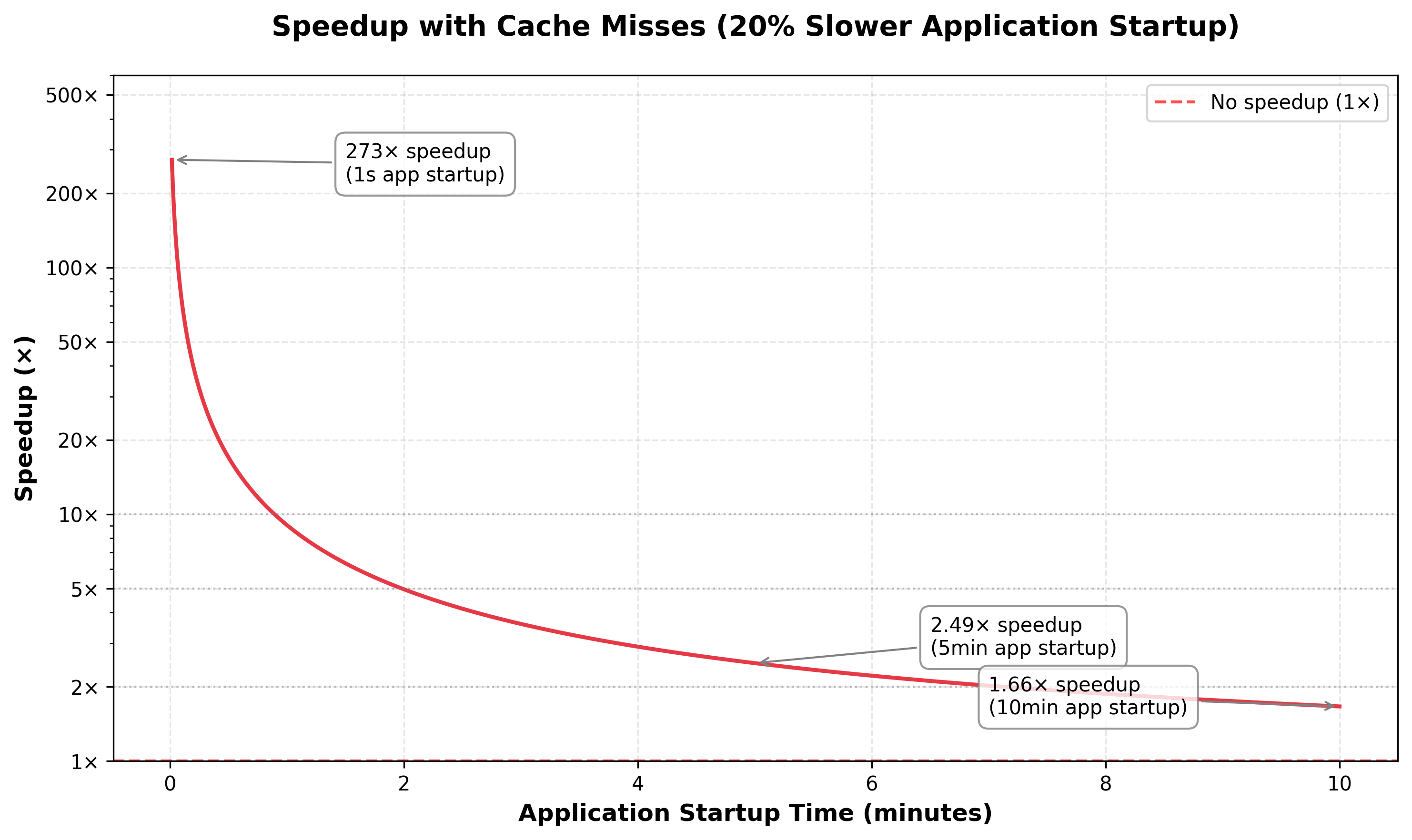 There are two important factors which reduce our initial 100x gain to a more modest 1.5-3x gain:1. Application Startup time: