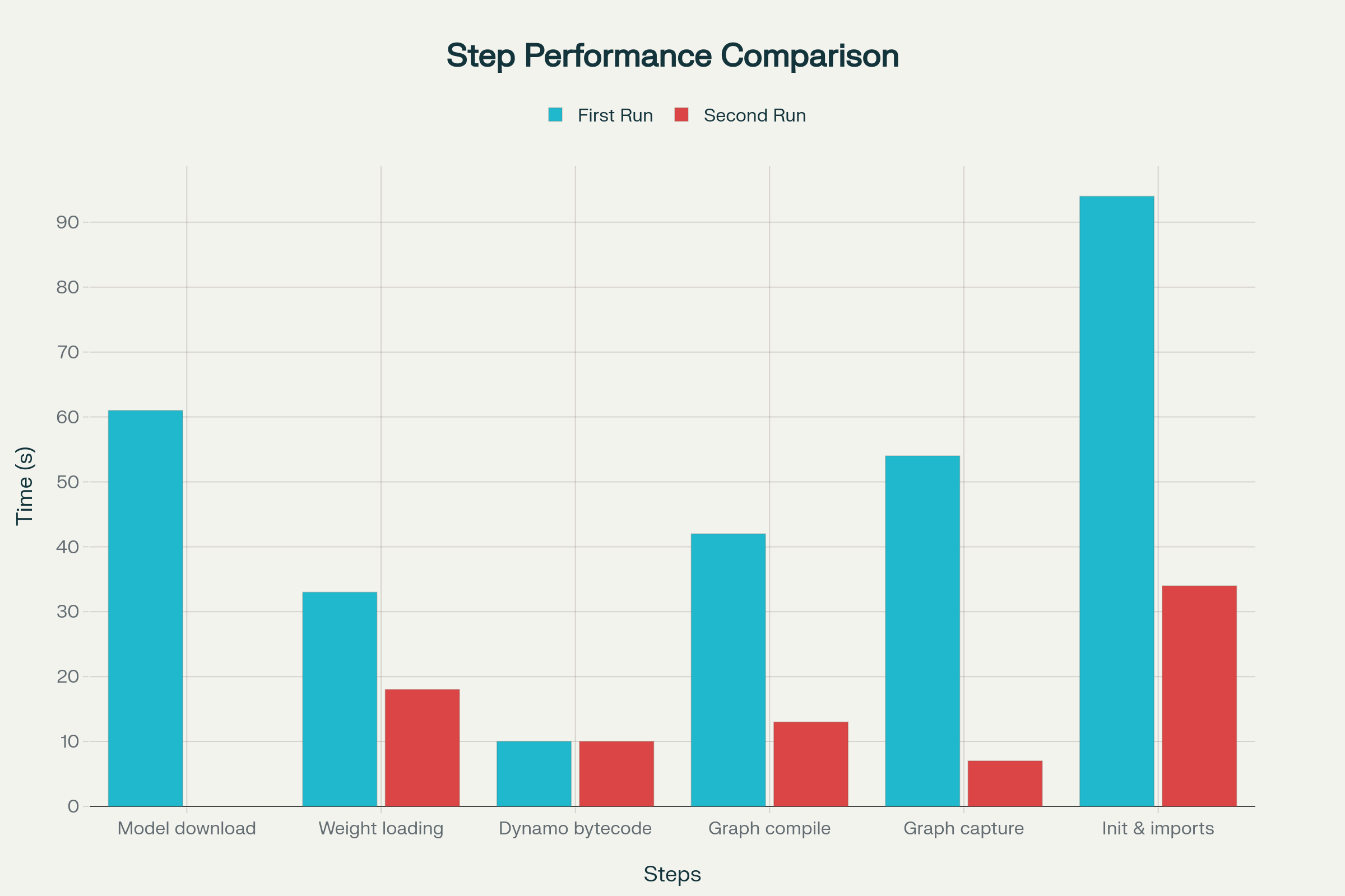 Kubernetes deployments are ephemeral, meaning each new pod starts from a clean slate. This can be inefficient for ML models, as many time-consuming initialization steps are repeated unnecessarily. By identifying and caching the outputs of these steps, we can dramatically reduce startup times. Let’s break down the process layer by layer to see where we can introduce optimizations.1. Model Loading