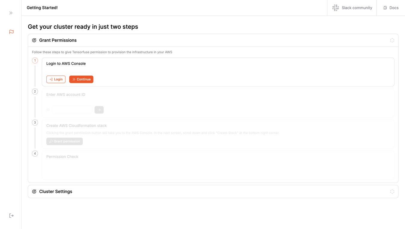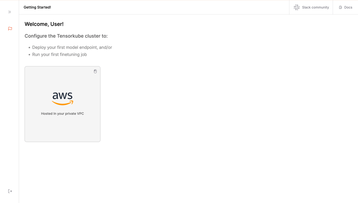 Please visit https://app.tensorfuse.io/ and keep this tutorial open in another tab if you need to refer to it.